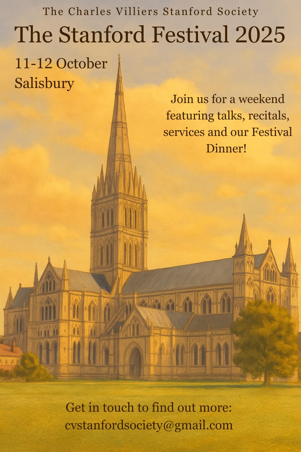 We are delighted to share the outline programme for The Stanford Festival 2025, which will take place in the beautiful surroundings of Salisbury Cathedral Close from 11–12 October 2025.
